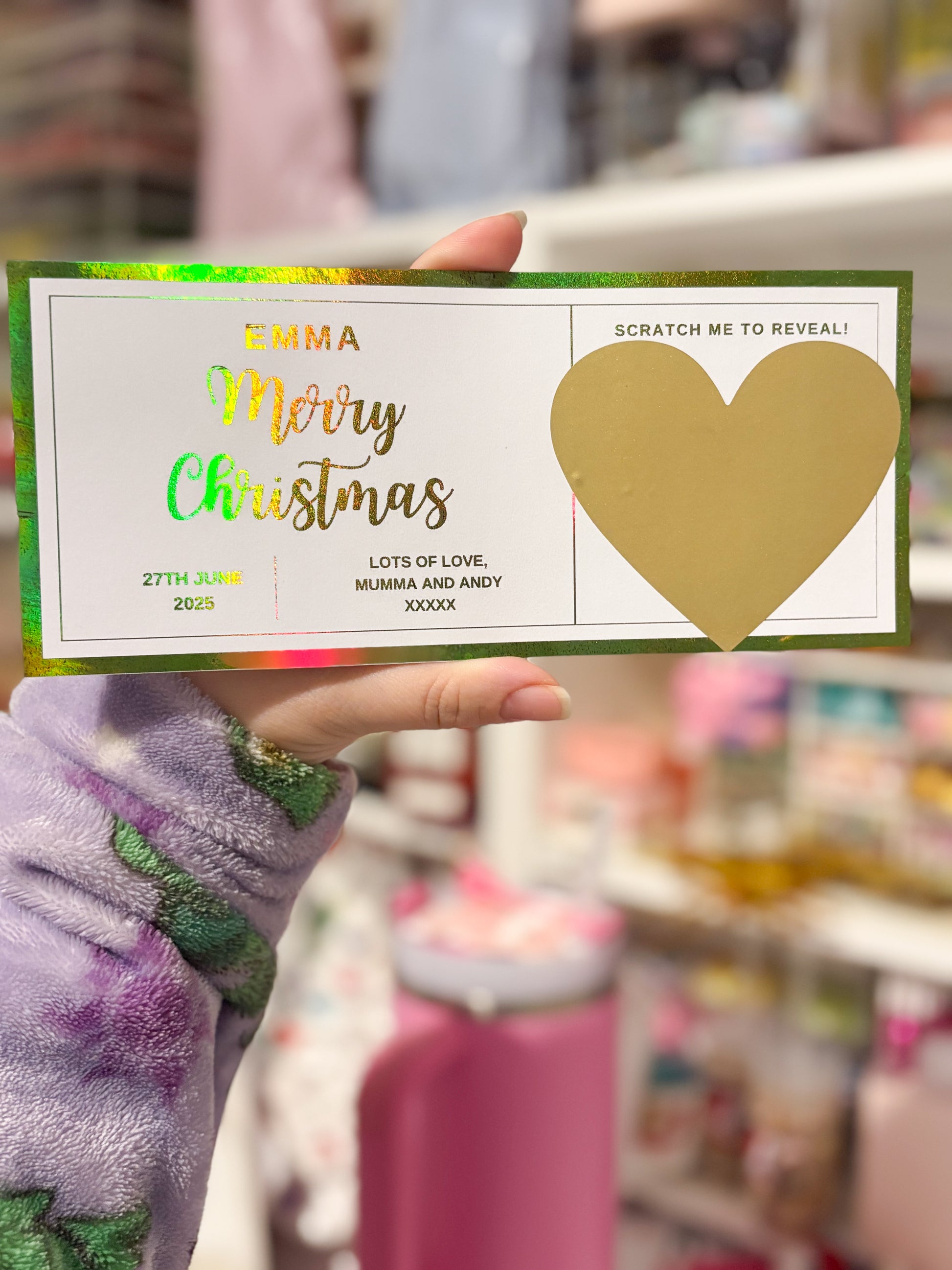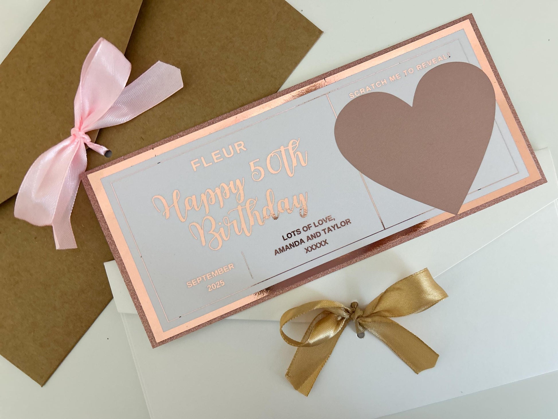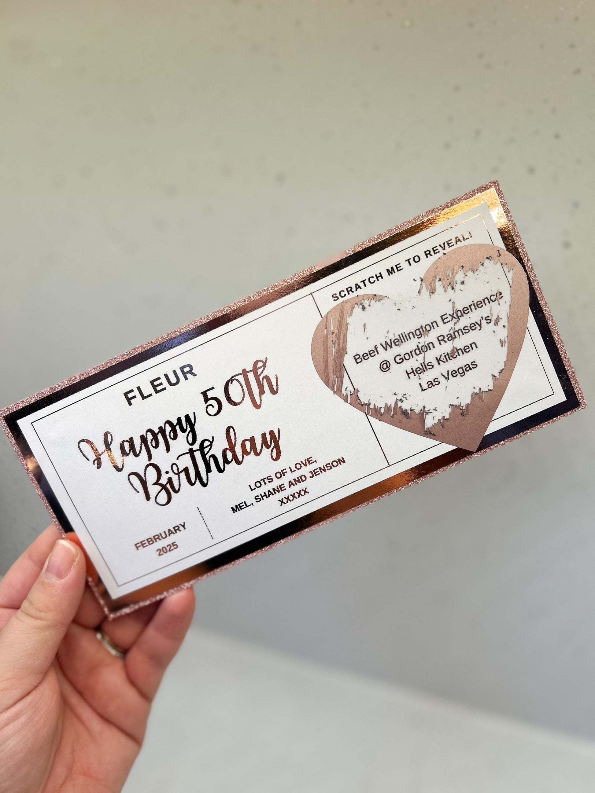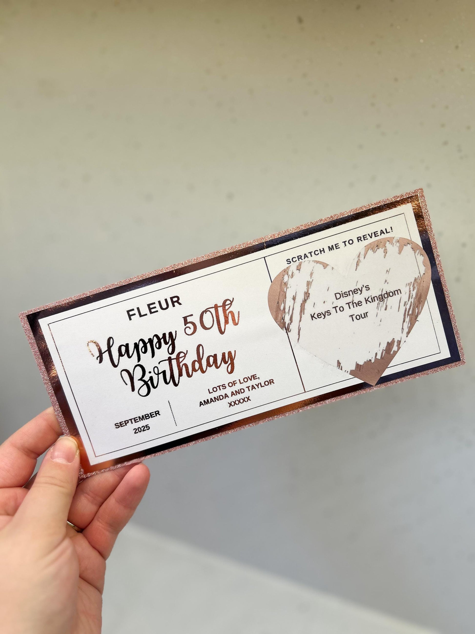 Can be made for concerts, birthday presents, holiday tickets, surprises (I can add a scratch off sticker to cover writing if needed).