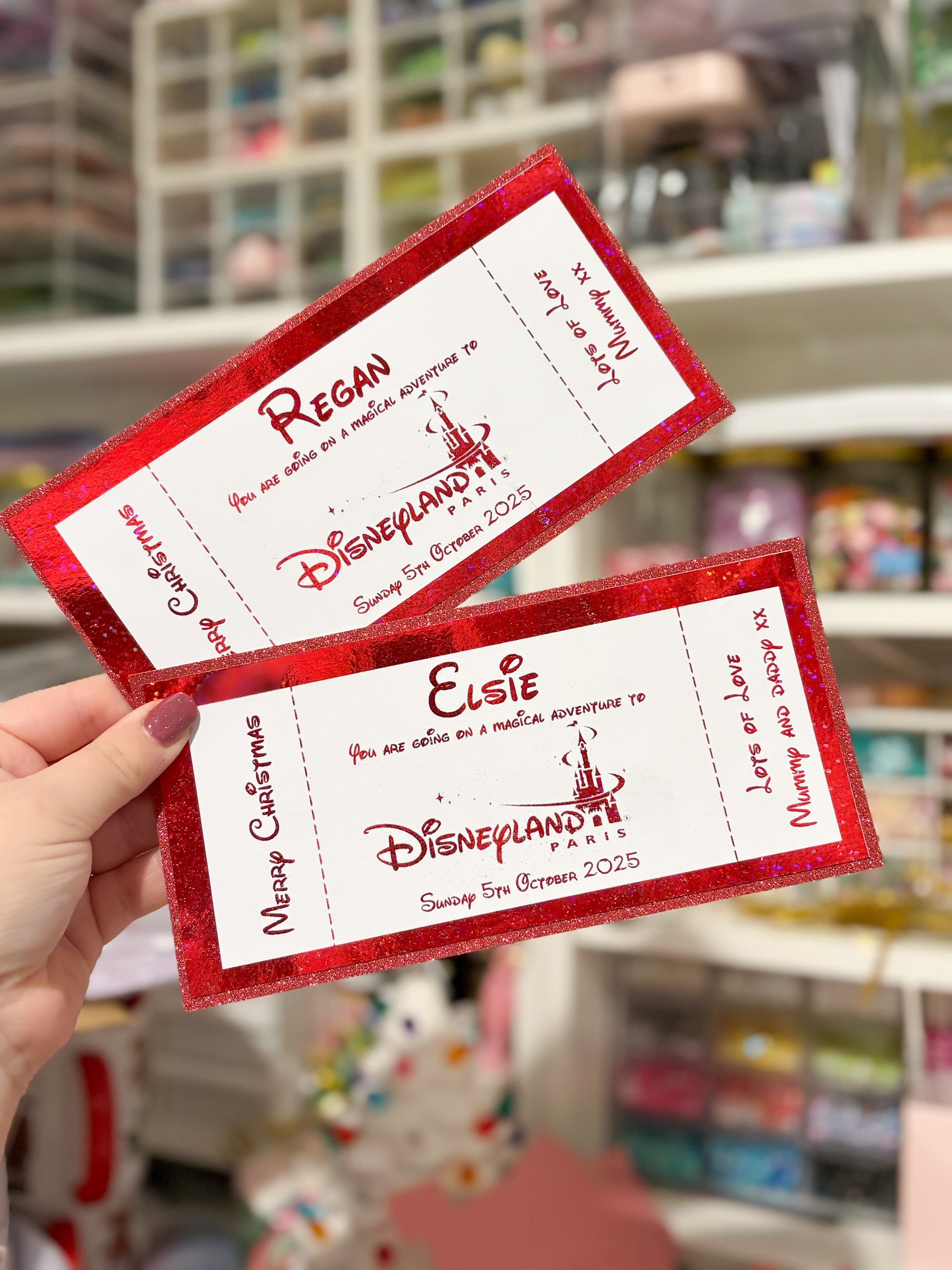 You can choose to have your ticket with an added glitter card background. All cards are sent with either a plain envelope or an upgraded envelope with ribbon (colours may vary)